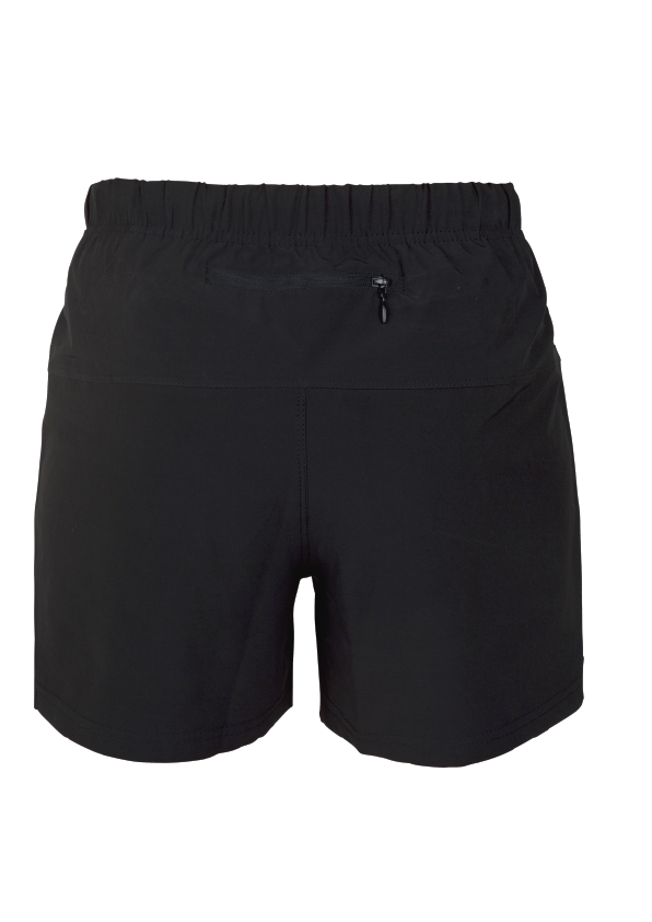 Pull on short , hidden security pocket for key . Elastic waist and draw cord.